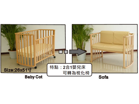 C-MAX二合一嬰兒木床 (BT-04)- 配合寶寶成長鬚求,- 單邊門欄可拆變身成梳化椅。- SIZE: 26"(W) x 51"(L)- 連5吋床褥- 底板設有兩個高度可供調節 - 單邊升降欄- 加有防咬膠邊,確保使用安全 - 顏色:原木色本產品只供訂購,店內不設陳列及存貨註:附圖僅供參考,一切以實物為準
